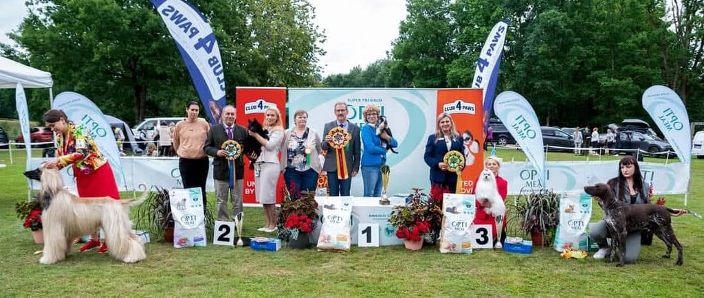 RUBY SKY ŽALČIO MOTĖ - buvo įvertintas puikiai, geriausias jaunimas veislėje, geriausias antras patinas veislėje po brolio (AINIS ŽALČIO MOTĖ) ir GRAŽIAUSIAS JAUNIMO ŠUO 4 (iš visų veislių jaunimo nugalėtoju).