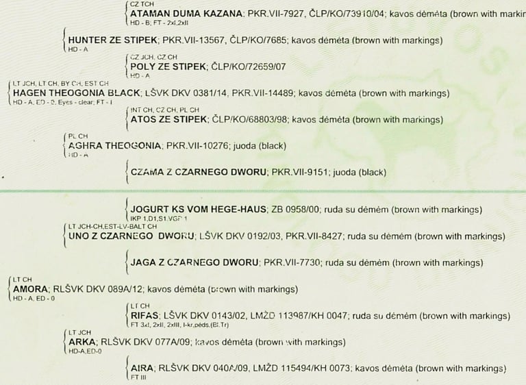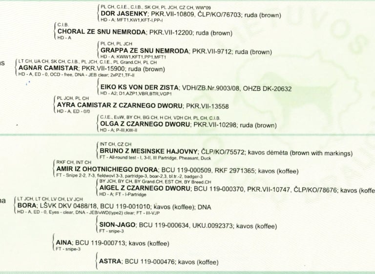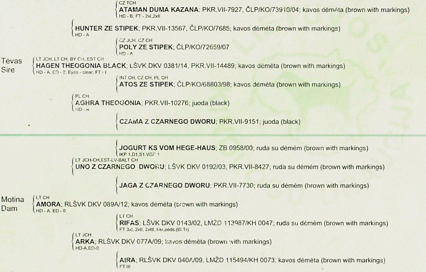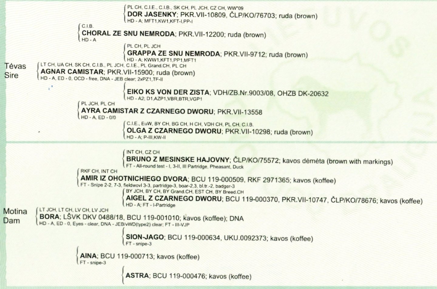 Šios vados giminės medyje galite pamatyti tokius legendinius šunis, puikiai žinomus Europoje, kaip: