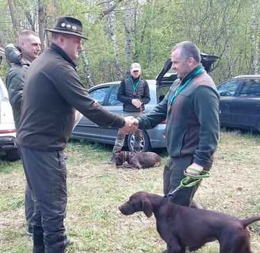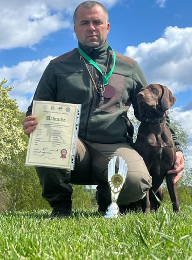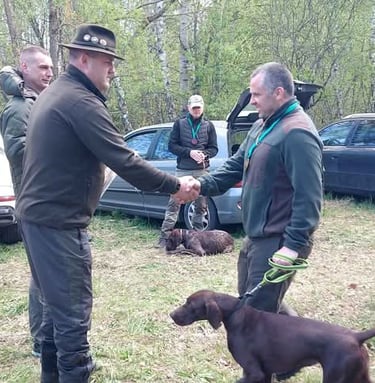 2025.04.26 Sudalyvavo Kinologų asociacijos "Deutsch Drahthaar" (KADD) įgimtų savybių bandymuose ir užsidirbo II laipsnio diplomą ir 2 vietą!